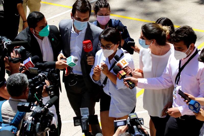 14:57: Una salida más que aparatosa fue la que tuvo la candidata a senadora por la Región Metropolitana, Karina Oliva, luego de concurrir a sufragar en el Liceo Javiera Carrera.