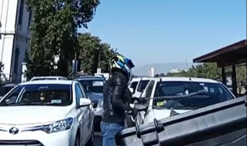 Durante la tarde del miércoles, el motociclista que rompió el parabrisas del vehículo de una mujer fue detenido por Carabineros, tras una orden del Tercer Juzgado de Garantía de Santiago.