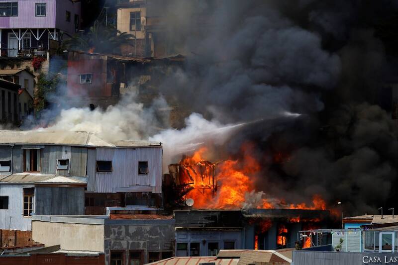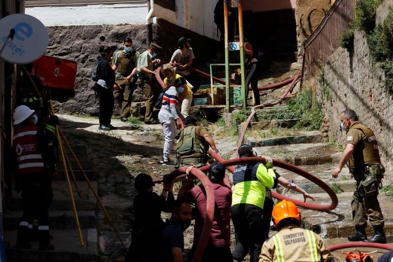 Revisa algunas imágenes sobre el incendio que afecta a viviendas en Valparaíso:
