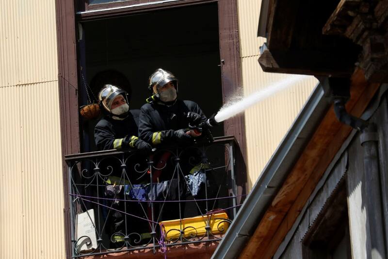 La situación se puso muy peligrosa, porque algunas fachadas de los inmuebles comenzaron a caer. Además un voluntario de Bomberos logró escapar, pero terminó herido con una torcedura.