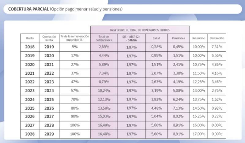 De esta forma, la retención en las boletas tendrá un alza de un 0,75% cada año, para así llegar a un 17% en 2028.
