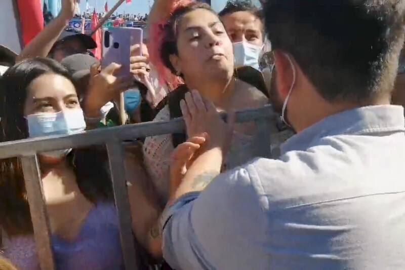 En ese contexto la mujer le envió un recado a Boric con una persona de su staff: "¡Dile al amari... de tu candidato que me pegaron!".