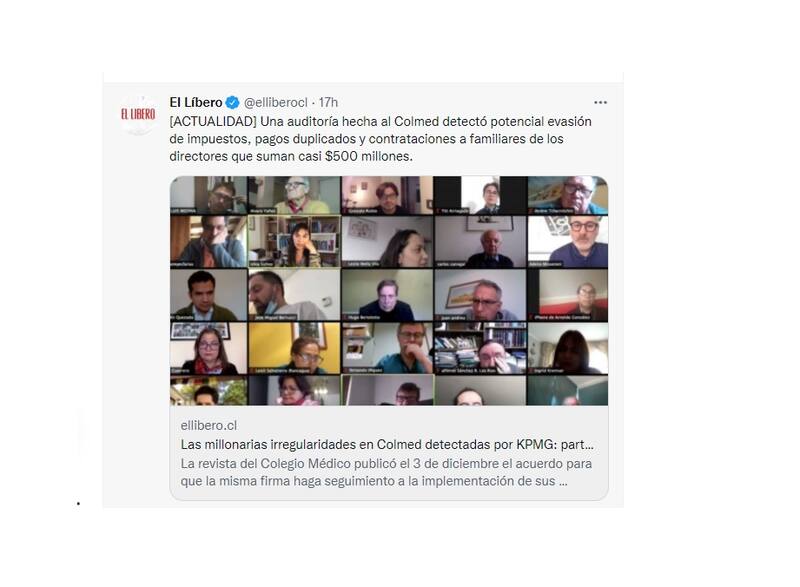 El Colegio Médico (Colmed) respondió a un artículo publicado este miércoles por el medio El Líbero que acusa irregularidades dentro del gremio entre 2014 y 2020, algunas atribuidas a Izkia Siches, actual vocera de campaña del candidato presidencial Gabriel Boric.