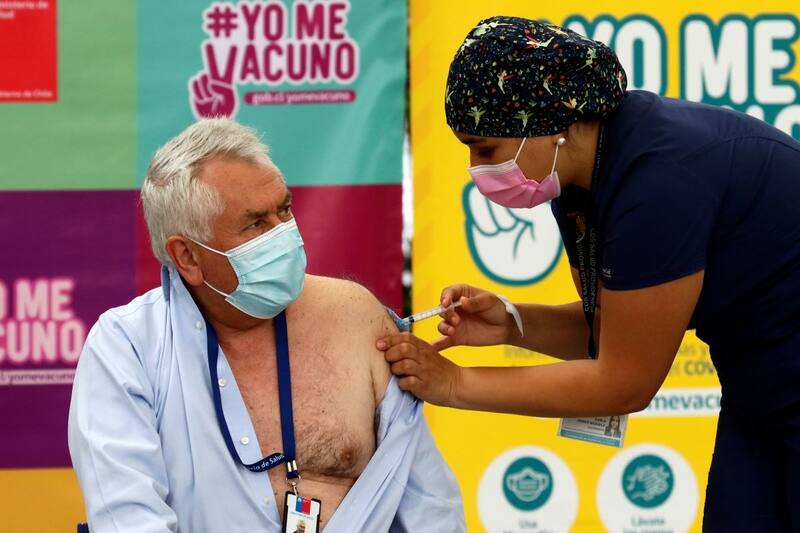 El secretario de Estado fue inoculado tras esperar su turno en el Liceo Carmela Carvajal de Providencia, conforme al calendario de vacunación publicado por el gobierno, ya que hoy le corresponde recibir la dosis a adultos mayores entre 71 y 72 años.