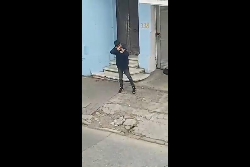 El hombre desató las alarmas ya que además gritaba diversos mensajes contra quienes pedían que bajara el arma. "¡Los voy a matar!", se alcanza a escuchar en el video viralizado en redes sociales.