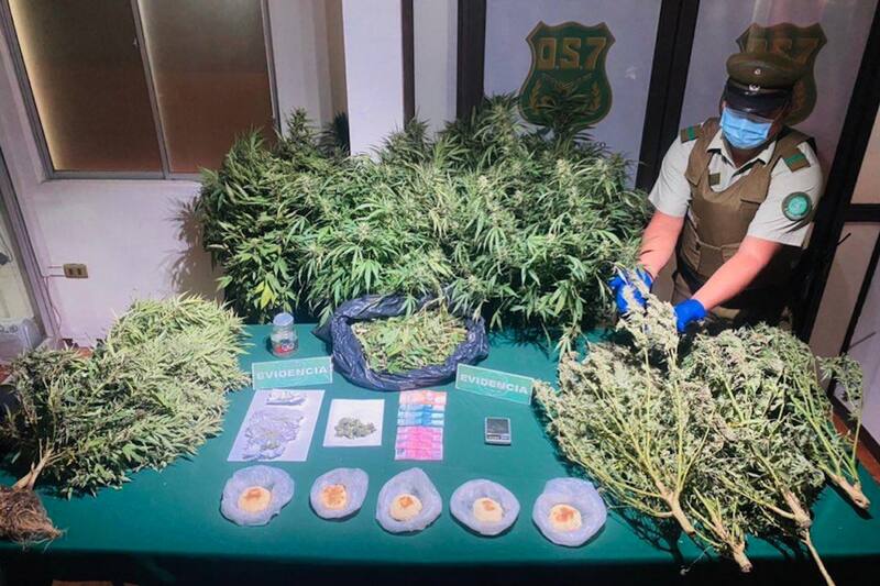 En el lugar además se encontraron cinco kilos de marihuana elaborada y 11 plantas de entre 30 y 120 centímetros de alto. Mientras el hombre fue detenido por infracción a la Ley 20.000. Por lo que será puesto a la justicia en las próximas horas.