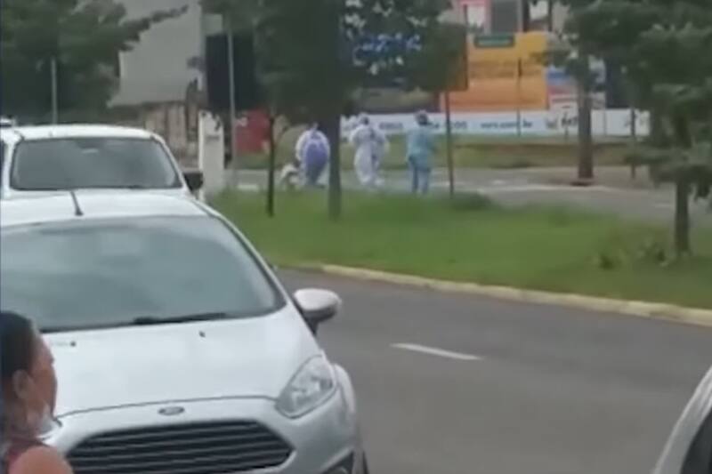 En las imágenes viralizadas en redes sociales, se alcanza a ver como el involucrado sale corriendo con la camiseta de paciente del Hospital Universitario (HU) de Londrina, en la región norte de Paraná. Pese a sus intentos, personal sanitario lo alcanzó a unas cuadras del recinto.