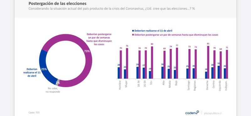 Por otro lado, un 25% piensa que estas sí "deberían realizarse el 10 y 11 de abril", mientras que un 2% "no sabe, no responde".