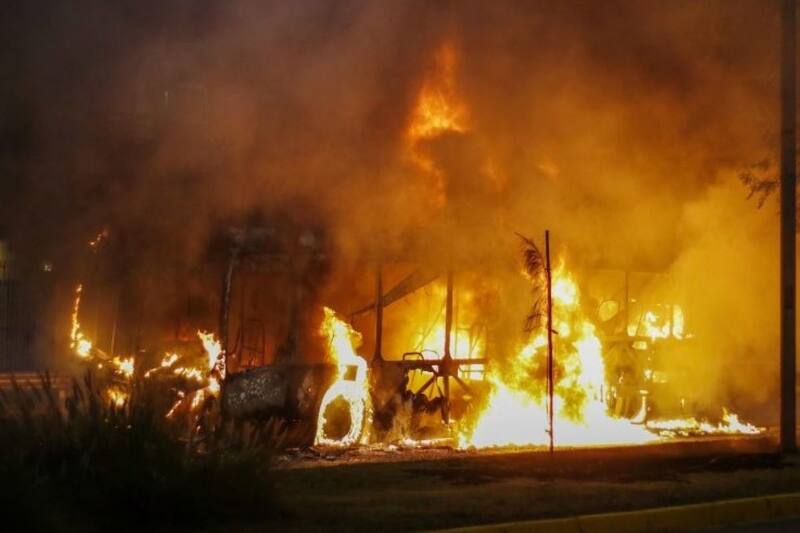 Por otro lado, tres buses del Transantiago fueron quemados durante la noche. El primero fue incendiado en Av. Grecia, con Obispo Orrego, en la comuna de Ñuñoa, mientras que otro vehículo del Transantiago sufrió el mismo destino en la comuna de La Pintana, en Av. San Francisco con Observatorio. Finalmente, un tercer bus fue siniestrado en Departamental con Las Industrias, en la comuna de San Joaquín.