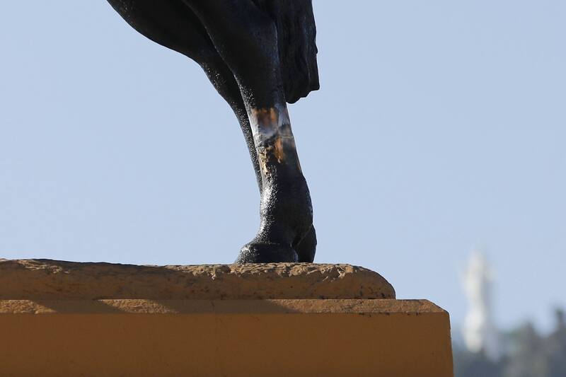 Entre estos, se encuentra el intento de derribarla que efectuaron desconocidos con distintas herramientas hacia las patas del equino, hechos que se enmarcaron en las manifestaciones feministas de este lunes 8 de marzo.