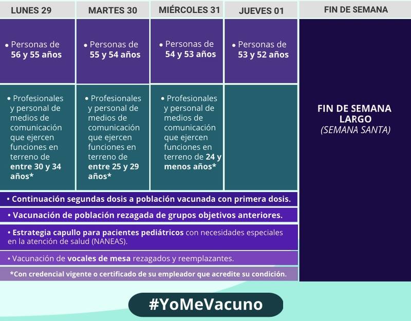Por otro lado, también pueden acudir a los recintos en busca de la vacuna quienes reciban la segunda dosis, así como la población rezagada de grupos objetivos anteriores, la estrategia capullo para pacientes pediátricos con necesidades especiales en la atención de salud (NANEAS) y la vacunación de vocales de mesa rezagados y reemplazantes.