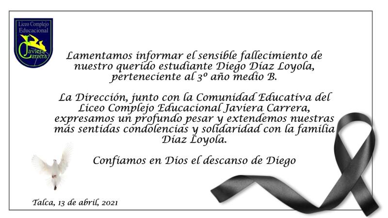 Asimismo, manifestaron que "la dirección junto a la comunidad educativa del Liceo Complejo Educacional Javiera Carrera, expresamos un profundo pesar y extendemos nuestras más sentidas condolencias y solidaridad con la familia".