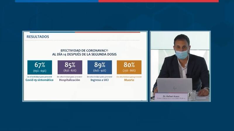 Rafael Araos, indicó que la efectividad de la fórmula desarrollada por Sinovac, 14 días después de recibida la segunda dosis, es de: