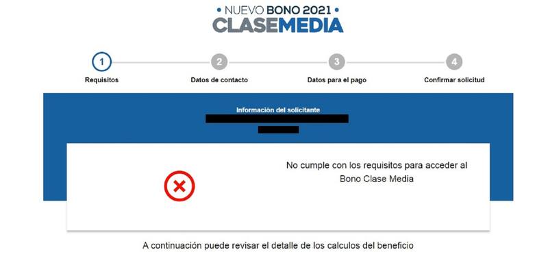 Una imagen se ha repetido una y otra vez en los perfiles de usuarios en distintas redes sociales. Se trata del mensaje de rechazo a la postulación y que indica que "no cumple con los requisitos" para acceder al bono.