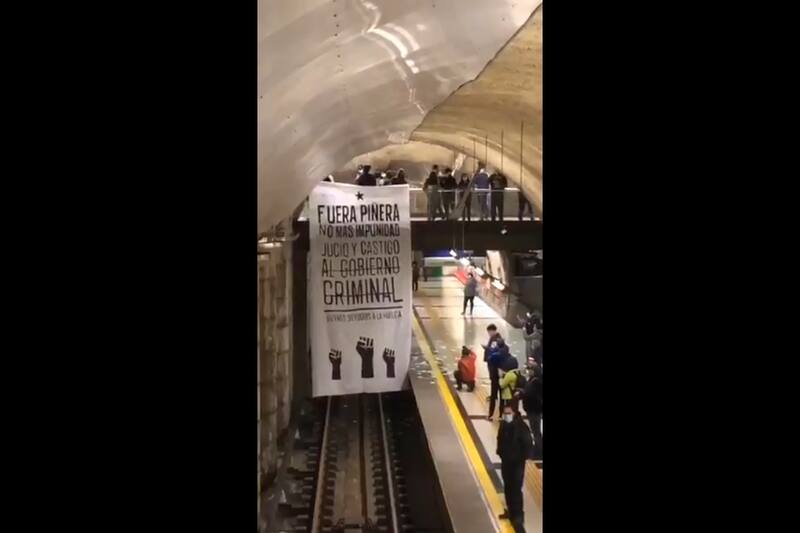 El servicio de metro se interrumpió durante unos minutos ya que colgaron un lienzo y generaron disturbios en la estación. Entre las demandas también hicieron énfasis en el ingreso mínimo universal de $600.000 para combatir los efectos generados por la pandemia y la libertad para "los presos políticos".