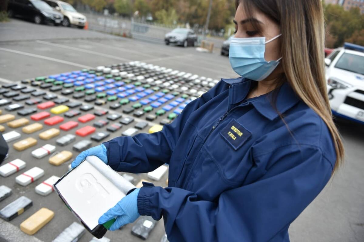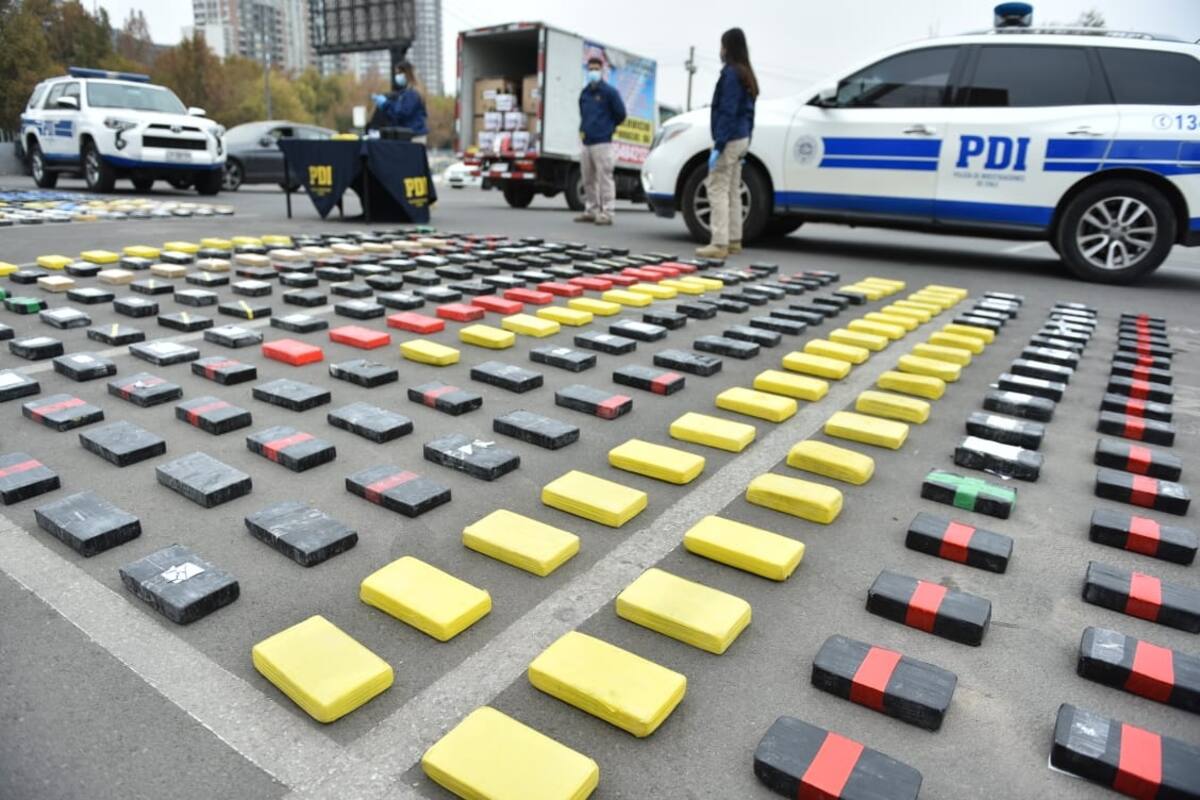Se trata de 852 kilos de distintas sustancias ilícitas, principalmente clorhidrato de cocaína, avaluadas en 14 mil millones de pesos, y de la que se podrían conseguir 7 millones de dosis, y que iban a ser comercializadas en la Región Metropolitana.