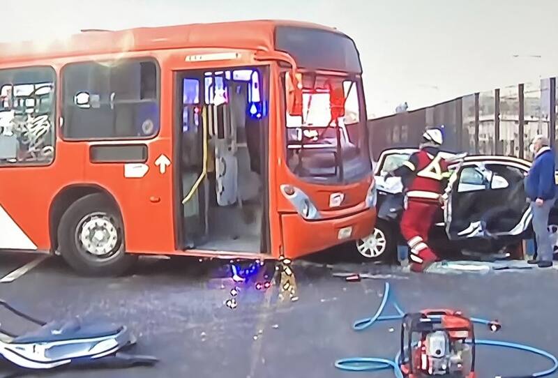"Hubo un robo de cuatro individuos que intimidaron al conductor con armas de fuego. Hicieron descender a los pasajeros y tras ello tomaron la autopista. Lo que finalmente terminó en un choque con un taxi que transportaba un adulto mayor", detalló Carabineros. Además recalcaron que "la intención de los delincuentes era quemar el bus" ya que en el vehículo se encontraron varias bombas molotov.