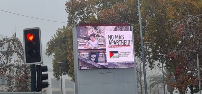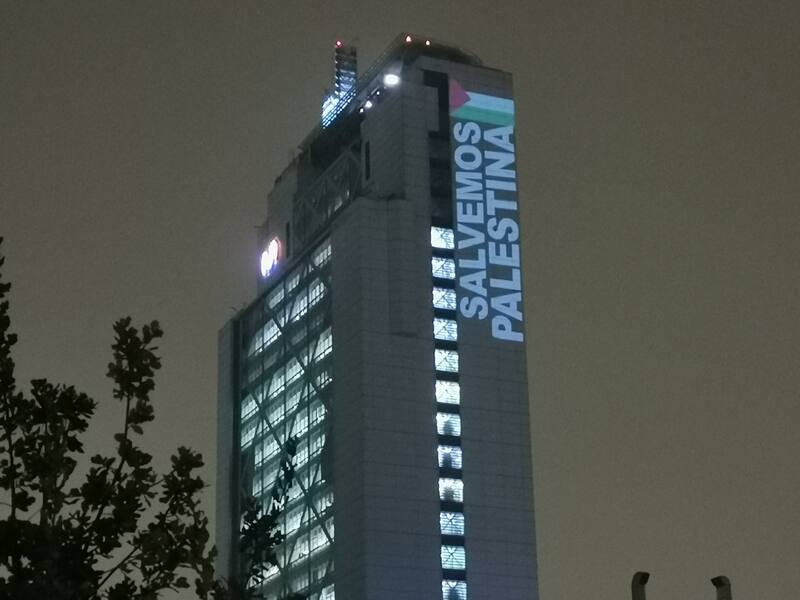 Una jornada de apoyo a Palestina se ha registrado este martes en Chile, la cual finalizó con una caravana vehicular durante horas de esta tarde, así como una proyección en la Torre Telefónica y la instalación de gigantografías en diversos puntos de la capital.