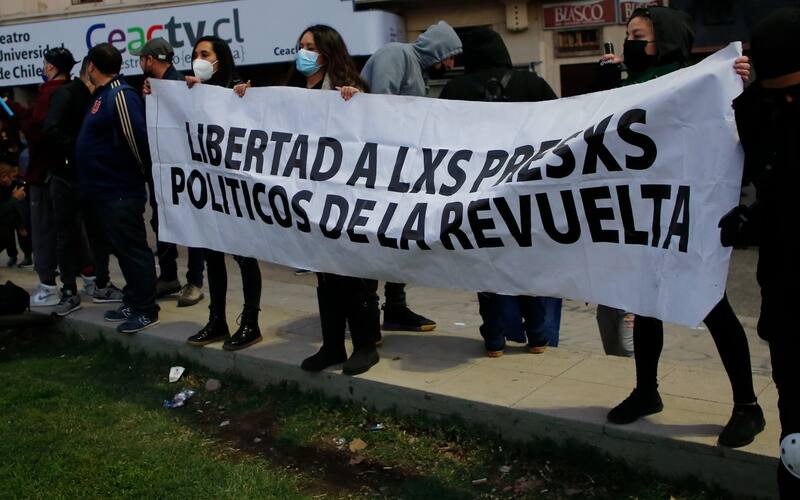 Durante la tarde de este viernes 28 de mayo, un grupo de manifestantes se aglomeró en las inmediaciones de Plaza Italia, exigiendo la libertad de los "presos políticos" que dejó estallido social de octubre del 2019.