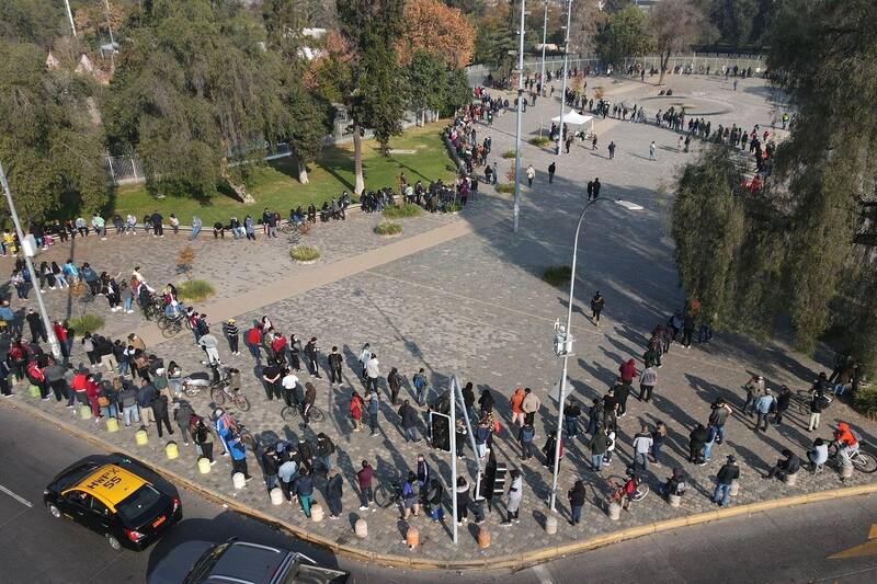 Desde muy temprano esta mañana, un gran número de personas comenzó a llegar a las afueras del Parque O'Higgins, en la comuna de Santiago, para recibir su vacuna contra el covid-19. Previo a la apertura del recinto a las 10:00 horas, se registraron gigantescas filas para ingresar.