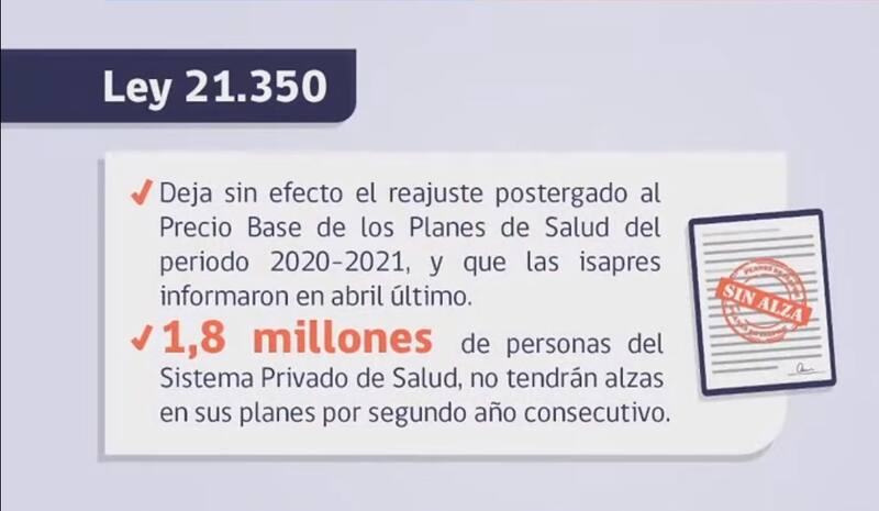 Esto debido a que el pasado lunes 14 de junio se dictó la Ley 21.350 que regula los precios de los planes de salud; y que estableció dejar sin efecto las alzas para el periodo 2020-2021 (que las Isapres informaron en abril).