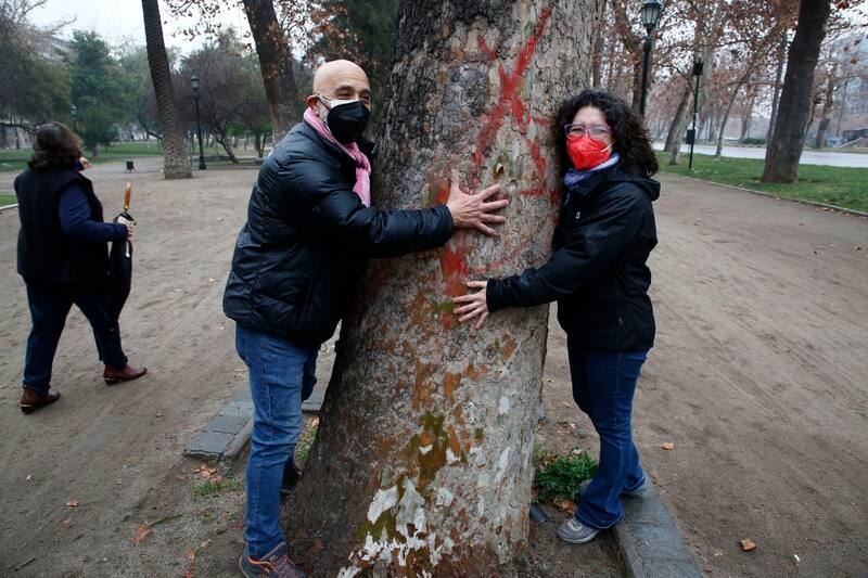 La protesta convocada por distintas organizaciones para evidenciar su molestia por el paso del tren urbano en el subsuelo de uno de los principales pulmones verdes de la capital, consistió en una "Abrazatón de árboles", que serían los principales perjudicados con el proyecto.