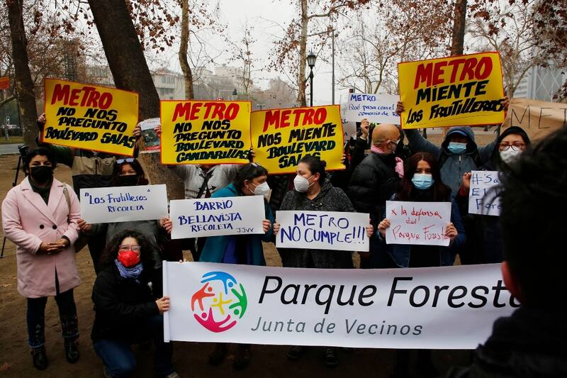 Una manifestación contra la futura edificación de la Línea 7 del Metro de Santiago, realizaron este sábado vecinos del Parque Forestal, por donde se planea la construcción del tramo que busca unir en un futuro próximo las comunas de Renca y Vitacura.