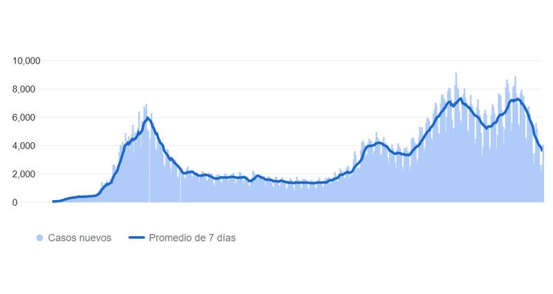 Por el contrario, el número de personas fallecidas se mantuvo en la tendencia con 164 decesos reportados, alcanzando 32.973 muertes por coronavirus durante toda la emergencia sanitaria.