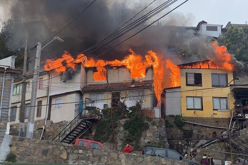 Un violento incendio se registra en la región de Valparaíso. El siniestro se reportó en el cerro San Juan de Dios y producto de las llamas cinco viviendas resultaron afectadas.
