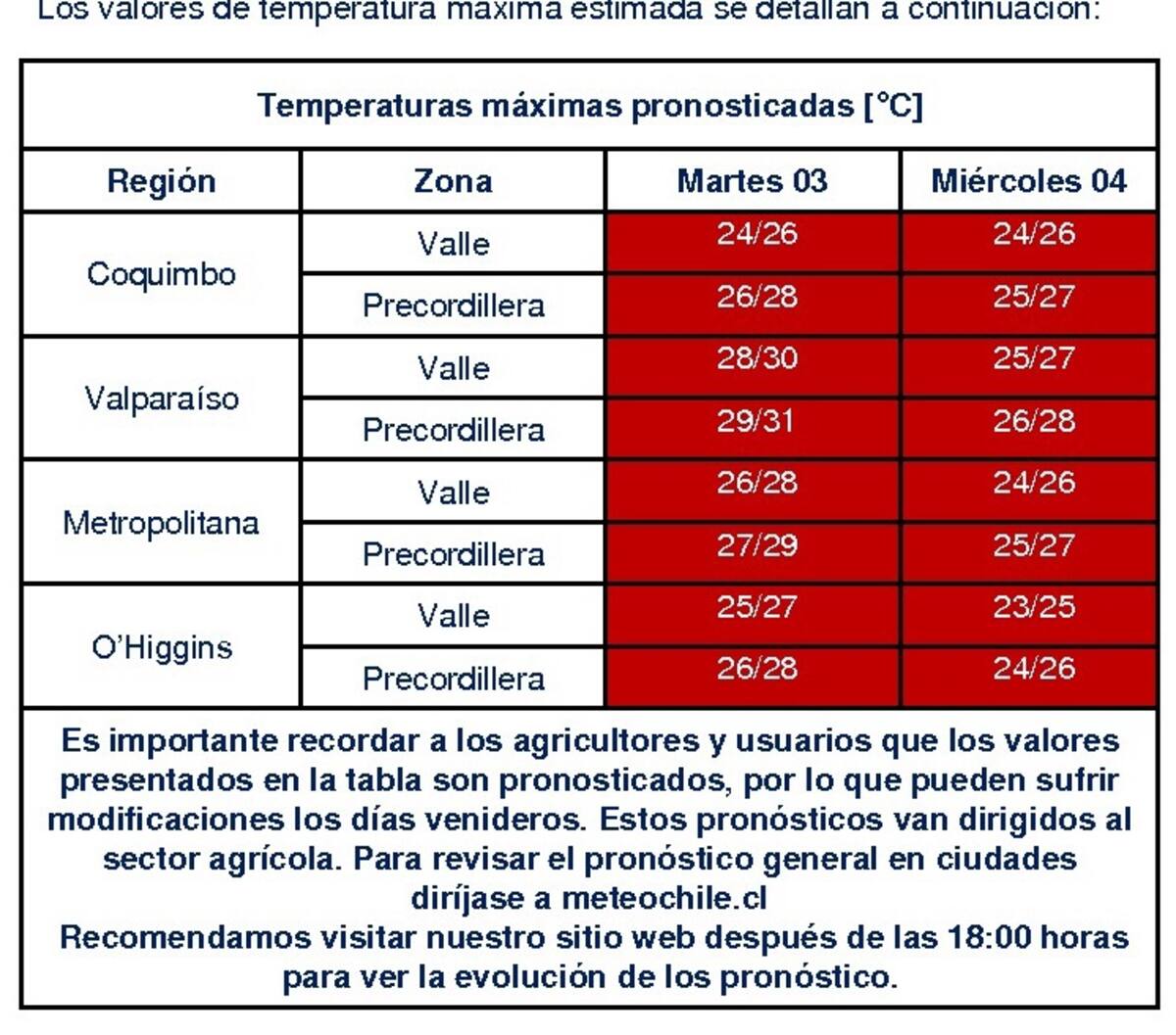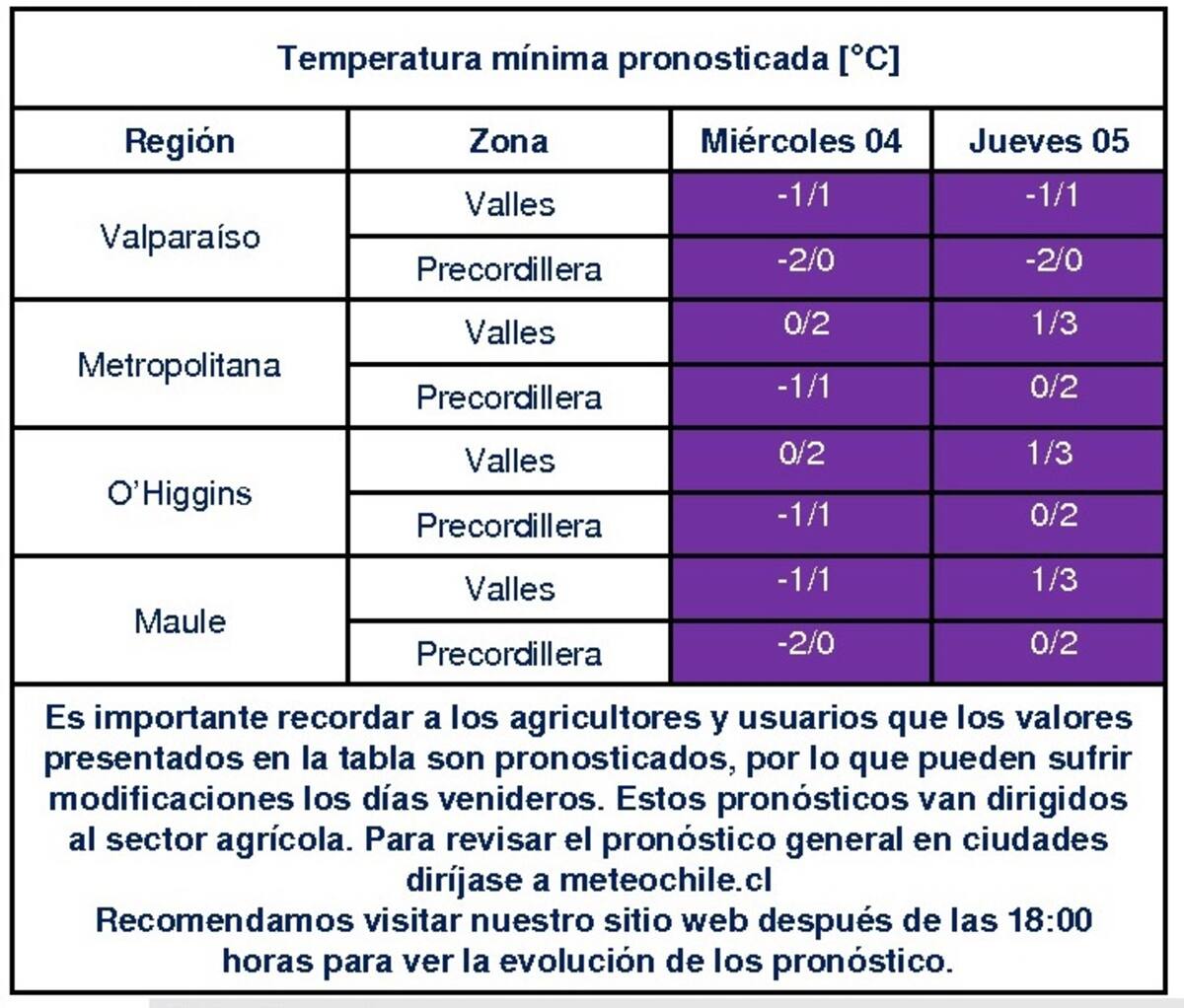Según detalla el reporte publicado, para este miércoles 4 de agosto se registrarán una abismal oscilación de temperaturas, lo que ocurrirá entre las regiones de Coquimbo, Valparaíso, Metropolitana, O'Higgins y Maule.