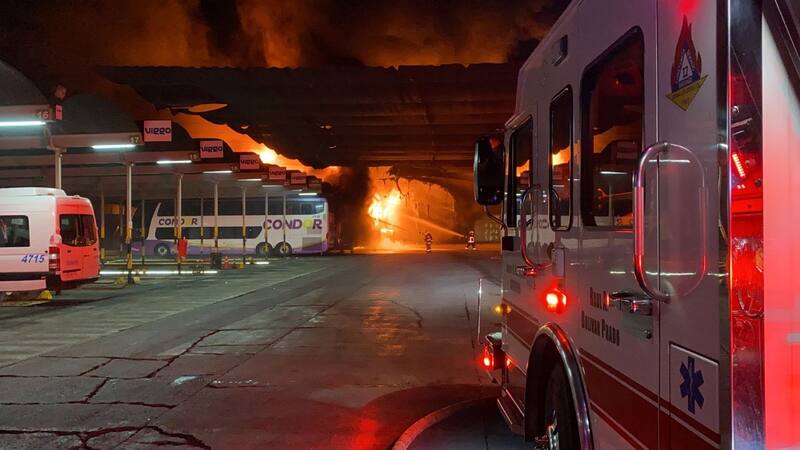 De acuerdo a los antecedentes aportados por los voluntarios, el siniestro se produjo en la intersección de calles Jesús Diez Martínez con Arica y producto del rápido avance de las llamas, al menos 8 buses resultaron completamente quemados.