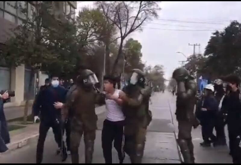 Usuarios han reportado las protestas a través de redes sociales en donde se ve a Carabineros enfrentando a diversos manifestantes, mientras el evento que se desarrolla sin público en la explanada del Parque O'Higgins.