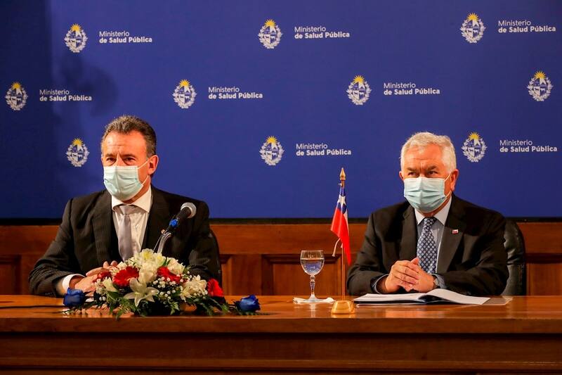 En dicho país, los ministros de Salud de Chile y Uruguay, Enrique París y Daniel Salinas, firmaron un acuerdo de colaboración en diversos temas sanitarios, entre ellos, la situación que viven ambos países respecto del Covid-19.