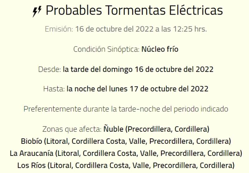 Por otra parte, se detalló que las regiones donde se iniciarían las tormentas eléctricas son: