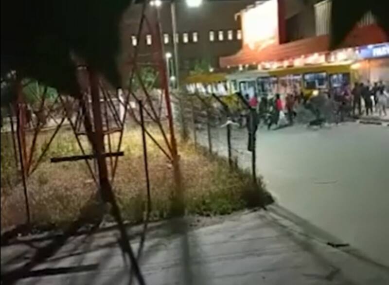 A través de los videos publicados en Twitter sobre la situación se logra ver a un centenar de personas reunidas en la entrada del local ubicado en Avenida Eyzaguirre, esperando que la micro impactara en reiteradas ocasiones la reja de entrada hasta romperla.