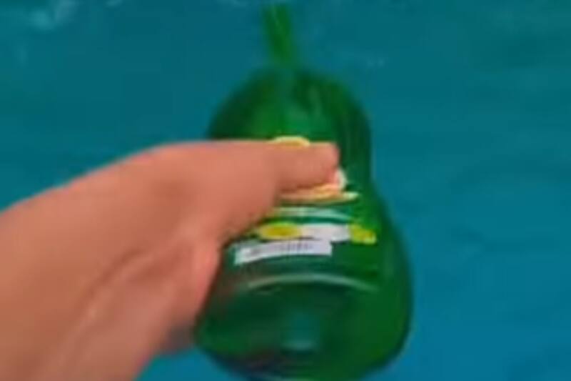 Posterior a esto, se ve como echa todo el lavalozas en la pileta, y poco a poco comienza a salir espuma, lo cual es celebrado por los jóvenes.