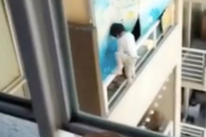 Según los matinales donde se difundió el video, los hechos corresponden a un hecho ocurrido el viernes pasado, y se puede ver cómo pese a que hay una malla frágil, este cruza de lado a lado por la baranda.