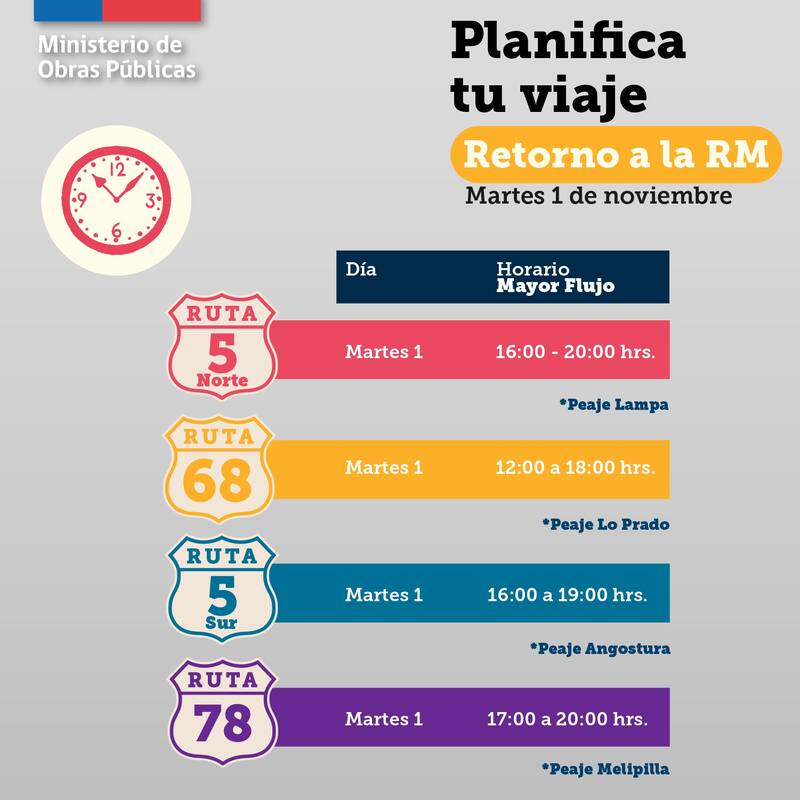 Este martes termina el fin de semana largo debido a los dos días feriados en nuestro calendario, por lo que es importante tener claro cómo funciona el plan de contingencia implementado por el Ministerio de Obras Públicas (MOP) ante el masivo retorno de personas a Santiago.