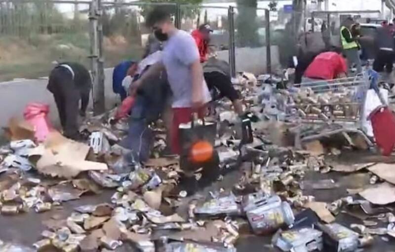 Sin embargo, personal policial detuvo a algunos individuos, ya que intentaron sacar las latas desde el interior del camión, lo que constituye un delito, según consignó Meganoticias.