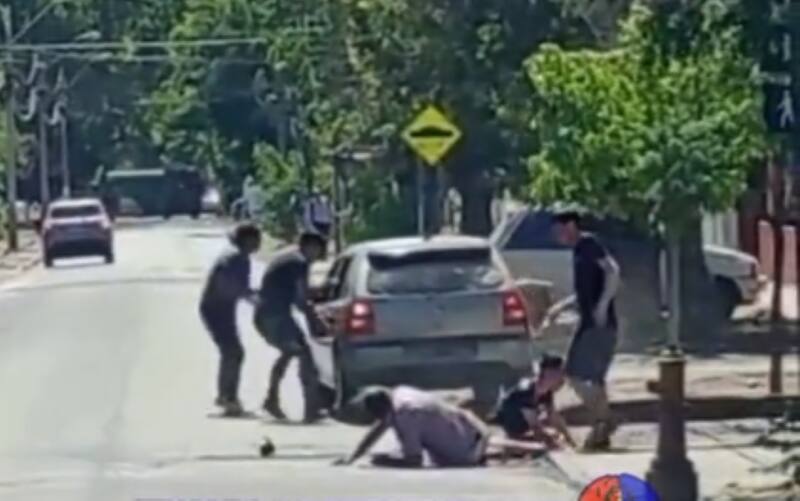 El hecho fue registrado por testigos y en las imágenes se puede apreciar cómo uno de los participantes en la riña tomó su vehículo y atropelló al adulto para luego darse a la fuga, dejando abandonado el auto en que se movilizaba.