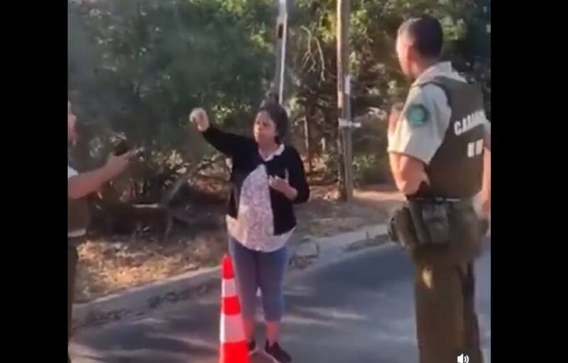 En el registro se aprecia cómo la mujer, mientras conversaba con un funcionario de Carabineros le dice "retírese de aquí para que pueda pasar la gente". Además lo amenaza, manifestándole que "nos vamos a ver usted y yo".