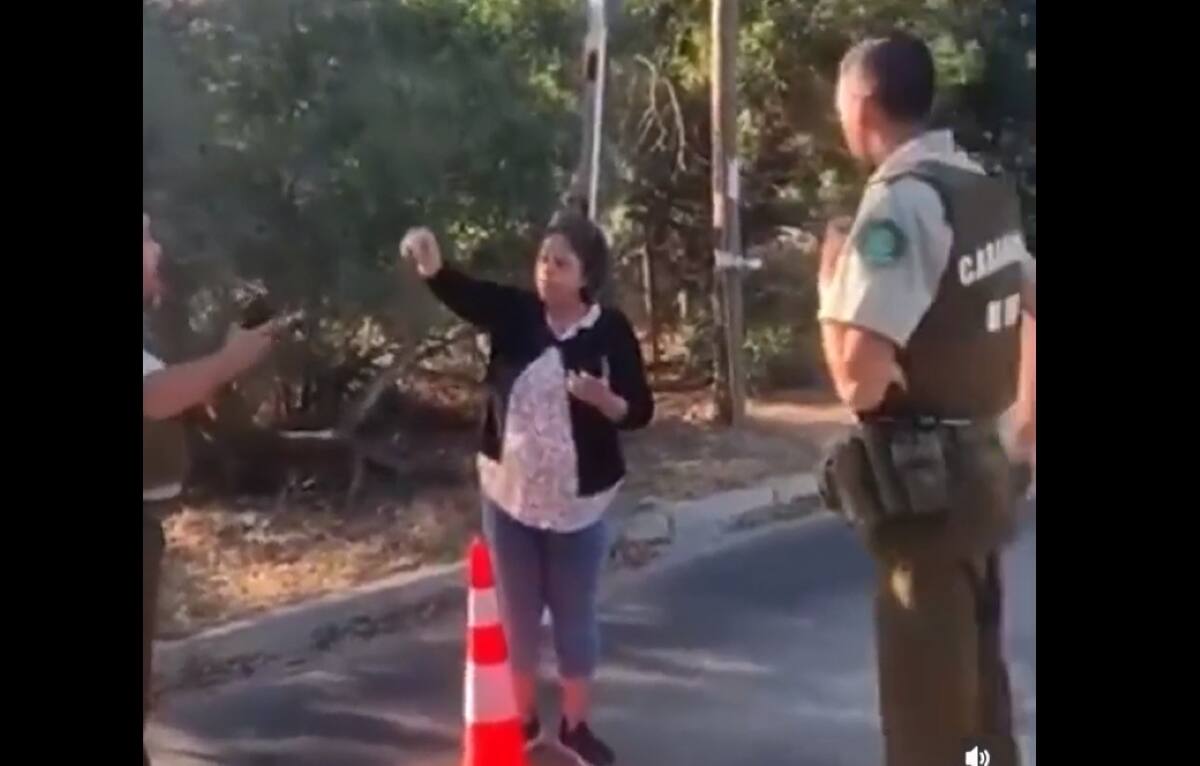 En el registro se aprecia cómo la mujer, mientras conversaba con un funcionario de Carabineros le dice "retírese de aquí para que pueda pasar la gente". Además lo amenaza, manifestándole que "nos vamos a ver usted y yo".