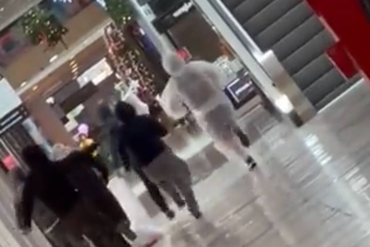 Según imágenes que se viralizaron en redes sociales, fue una tienda Mac Online la que sufrió el robo, y en los videos se ve un grupo de hombres con overol corriendo al interior del centro comercial, escapando con el botín.