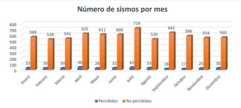 De esta manera, se lograron detectar 7.436 sismos solo en 2021, lo que significa 619 por mes, 20 al día y casi uno por hora (0,8), además de tener el terremoto más fuerte registrado en la historia, el de Valdivia de 1960, que tuvo una intensidad de 9.5.