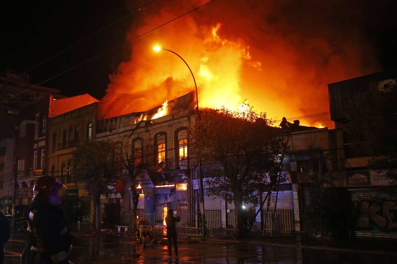 Un voraz incendio afectó en la noche del sábado a un edificio antiguo en la ciudad de Valparaíso, siniestro que posteriormente se propagó a los locales comerciales que se encontraban al interior de una galería que poseía el viejo inmueble.