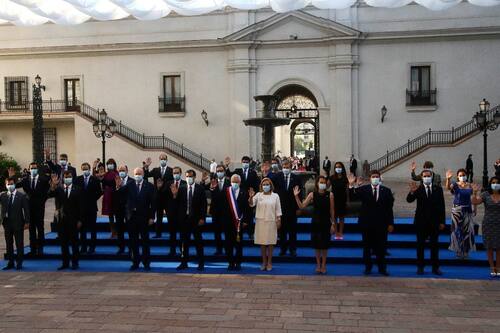 9:44: A solo horas de dejar su cargo, el Presidente Sebastián Piñera se tomó la última foto oficial junto a sus ministros de Estado.