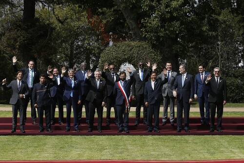 16:00: Boric se fotografía junto a las primeras damas y jefes de Estado invitados a la ceremonia de cambio de mando.
