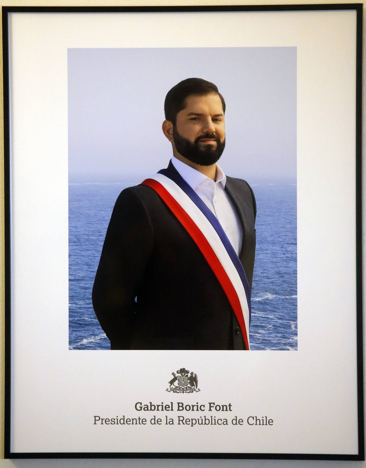 Junto con el comienzo oficial del nuevo Gobierno, también se realizó un simbólico cambio en el Palacio de La Moneda: se sacó el cuadro con la foto presidencial de Piñera y se colgó la imagen oficial de Boric, donde, por supuesto, posó sin corbata. Además, de fondo aparece el mar, que correspondería a la localidad de Tunquén.