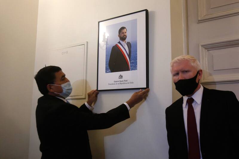 La cara y nombre del expresidente estuvo colgado allí y en todas las oficinas gubernamentales del país durante los últimos 4 años, mientras que ahora estará el retrato de Gabriel Boric por el periodo 2022-2026.