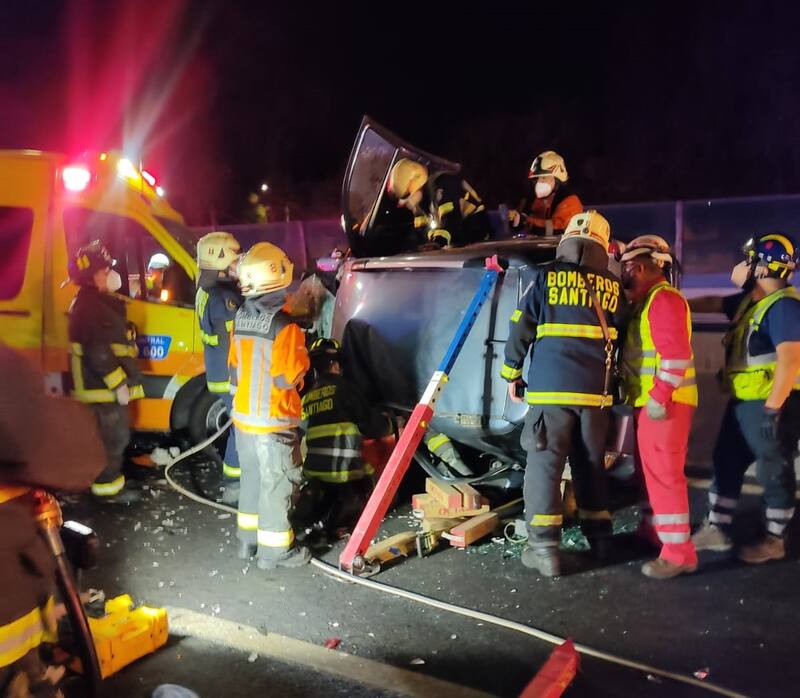 Un conductor que iba a exceso de velocidad y contra el tránsito chocó a una ambulancia de servicio en la Autopista Central, en la intersección de Jorge Hirmas, comuna de Renca, durante la mañana de este sábado.